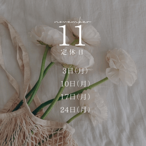 隠れ家のようなプライベートサロン〜11月の定休日のお知らせ