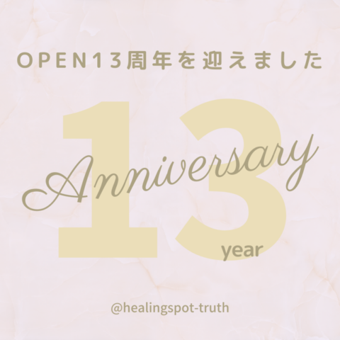 お蔭様で、1月13日をもちましてヒーリングスポットtruthはOPEN13周年を迎えることができました。