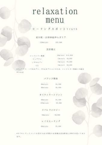小顔矯正・バランス整体・オイルマッサージ・リフレクソロジーのヒーリングスポットtruthは、本日営業しています。